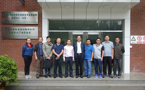 徐厅长一行考察了昆明动物所花红洞园区实验动物检疫楼、GLP中心、金丝猴饲养区、生物安全三级实验室和模式动物表型与遗传研究设施拟建设地点,肯定了研究所在灵长类实验动物平台建设中取得的成绩。