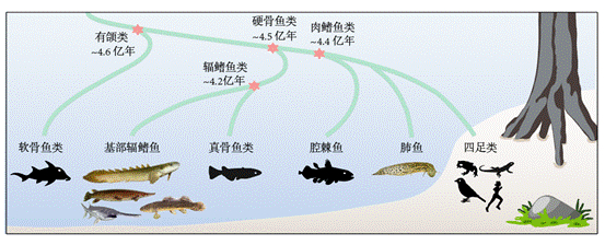 脊椎动物从水生到陆生是脊椎动物演化史上的一次飞跃,也是脊椎动物演化中最重要的科学问题之一。脊椎动物登陆事件发生于有颌类的硬骨鱼类群。现生硬骨鱼类包含肉鳍鱼类和辐鳍鱼类。这两个类群中物种数量最为繁盛的是肉鳍鱼类中的四足动物(成功登陆的脊椎动物类群)以及辐鳍鱼类中的真骨鱼类。相对于这两个最为繁盛的类群,硬骨鱼类的基部类群物种数量相对稀少,但却隐藏着祖先演化所遗留的痕迹,有“活化石”之称。