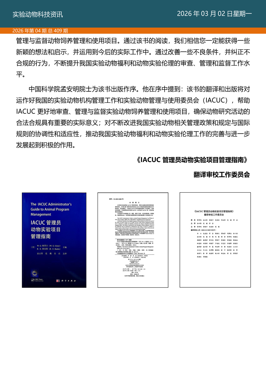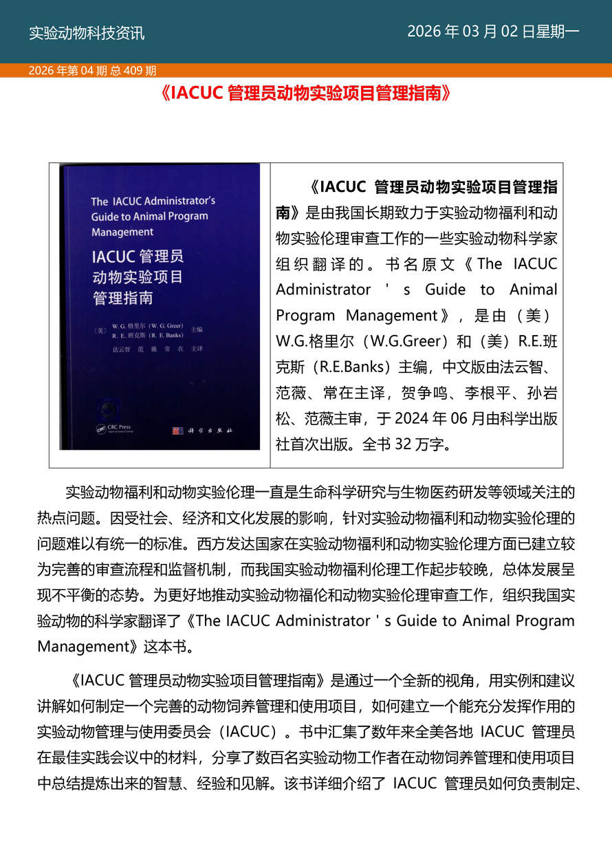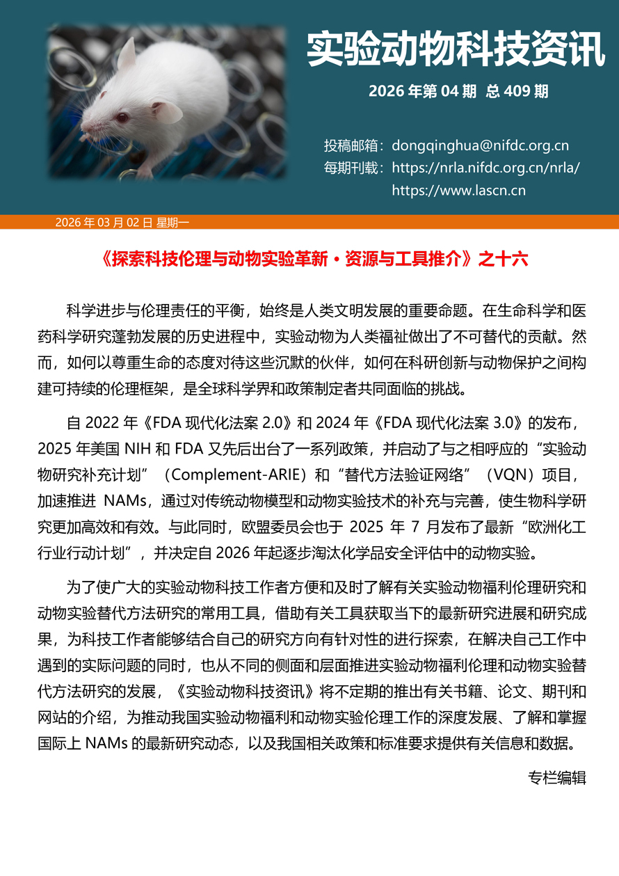 摘要:国家实验动物专家委员会工作活动简报由国家实验动物专家委员会主办,即时报道我国实验动物工作进展、行业发展动态、实验动物专家参与的重大活动等内容。本期主要内容——《探索科技伦理与动物实验革新 • 资源与工具推介》之十六。