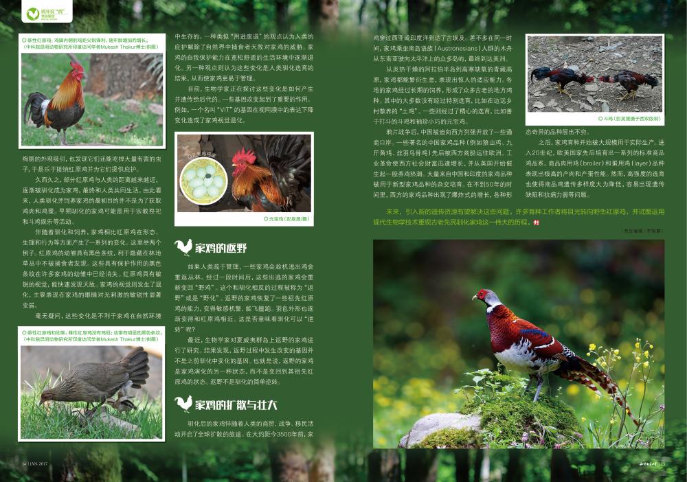 驯化后的家鸡伴随着人类的商贸、战争、移民活动开启了全球扩散的旅途。在大约距今3500年前,家鸡穿过西亚或印度洋到达了古埃及。差不多在同一时间,家鸡乘坐南岛语族(Austronesians)人群的木舟从东南亚驶向太平洋上的众多岛屿,最终到达美洲。从炎热干燥的阿拉伯半岛到高寒缺氧的青藏高原,家鸡都能繁衍生息,表现出惊人的适应能力。各地的家鸡经过长期的饲养,形成了众多古老的地方鸡种。其中的大多数没有经过特别选育,比如在边远乡村散养的“土鸡”。一些则经过了精心的选育,比如善于打斗的斗鸡和袖珍小巧的元宝鸡。