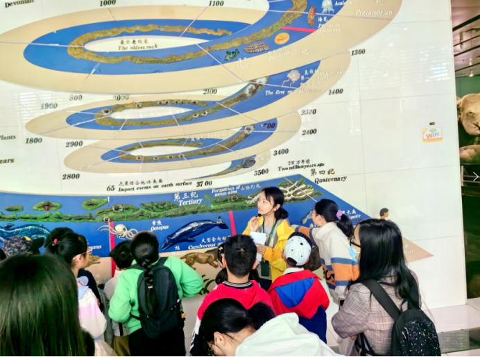 本次课程以水生生物多样性为主题,昆明动物所助理研究员舒树森以《一滴水里的微观世界》的科普讲座,从原生动物门、浮游生物的类别、浮游动物与人类的关系、以动画片海绵宝宝里的角色引入现实中的物种让大家一起寻找“痞老板”。高级工程师杨劲松则带领孩子们在昆明动物博物馆里通过对水生生物的展品介绍,介绍了水生生物多样性常见物种以及云南特有种,从可见的鱼类、水生物种到肉眼无法看见的浮游生物的讲述,更加立体的了解水生生物的特性以及在自然环境中的地位。让学生了解一个群落中的各种生物之间,生物与环境之间都存在着复杂的相互关系,从而需要保护每一个生物群落的完整性。