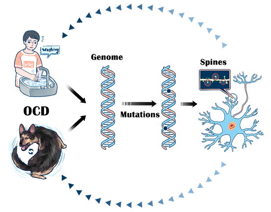 本研究针对转圈行为这一家犬强迫症的代表性表型,在两个独立犬种中(比利时马里努阿犬和昆明犬)开展了表型鉴定和全基因组测序工作。通过群体分化和全基因组关联分析筛选到11个候选强迫症风险基因,且这些基因与人类全基因组关联研究揭示的强迫症关联基因有显著重叠(P<0.0001),证实了人类和家犬强迫症的显著遗传趋同性。进一步的基因表达分析和功能验证表明两个强迫症候选风险基因PPP2R2B和ADAMTSL3可显著影响树突棘的发育、密度和形态,提示树突棘发育与功能改变可能参与了人和家犬共享的强迫症发病机制。我们的研究揭示了人和家犬强迫症在遗传和细胞生物学方面的趋同性,提示家犬或可作为包括强迫症在内许多人类疾病研究的模型物种。