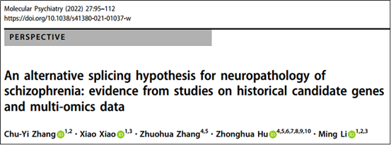 论文1通讯作者为中国科学院昆明动物研究所李明研究员和中南大学湘雅医院胡中华教授,第一作者为昆明动物研究所博士生张楚祎。文章链接:https://www.nature.com/articles/s41380-021-01037-w