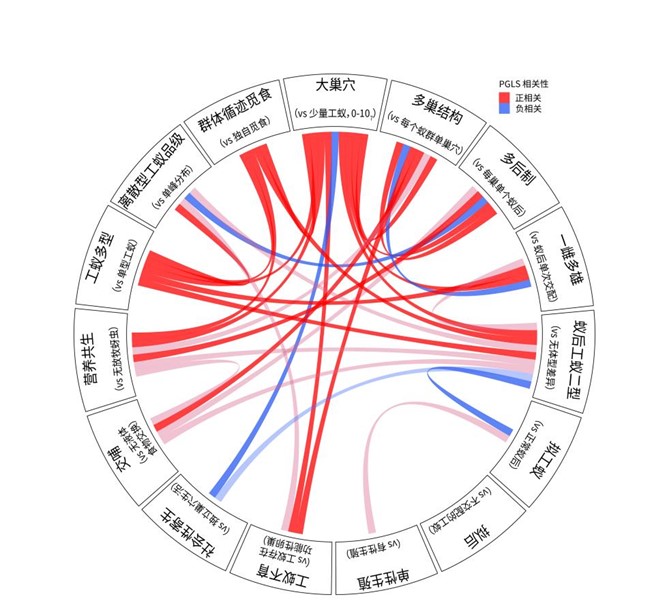 图3 蚂蚁社会性特征之间的相互关系(Joel Vizueta绘)